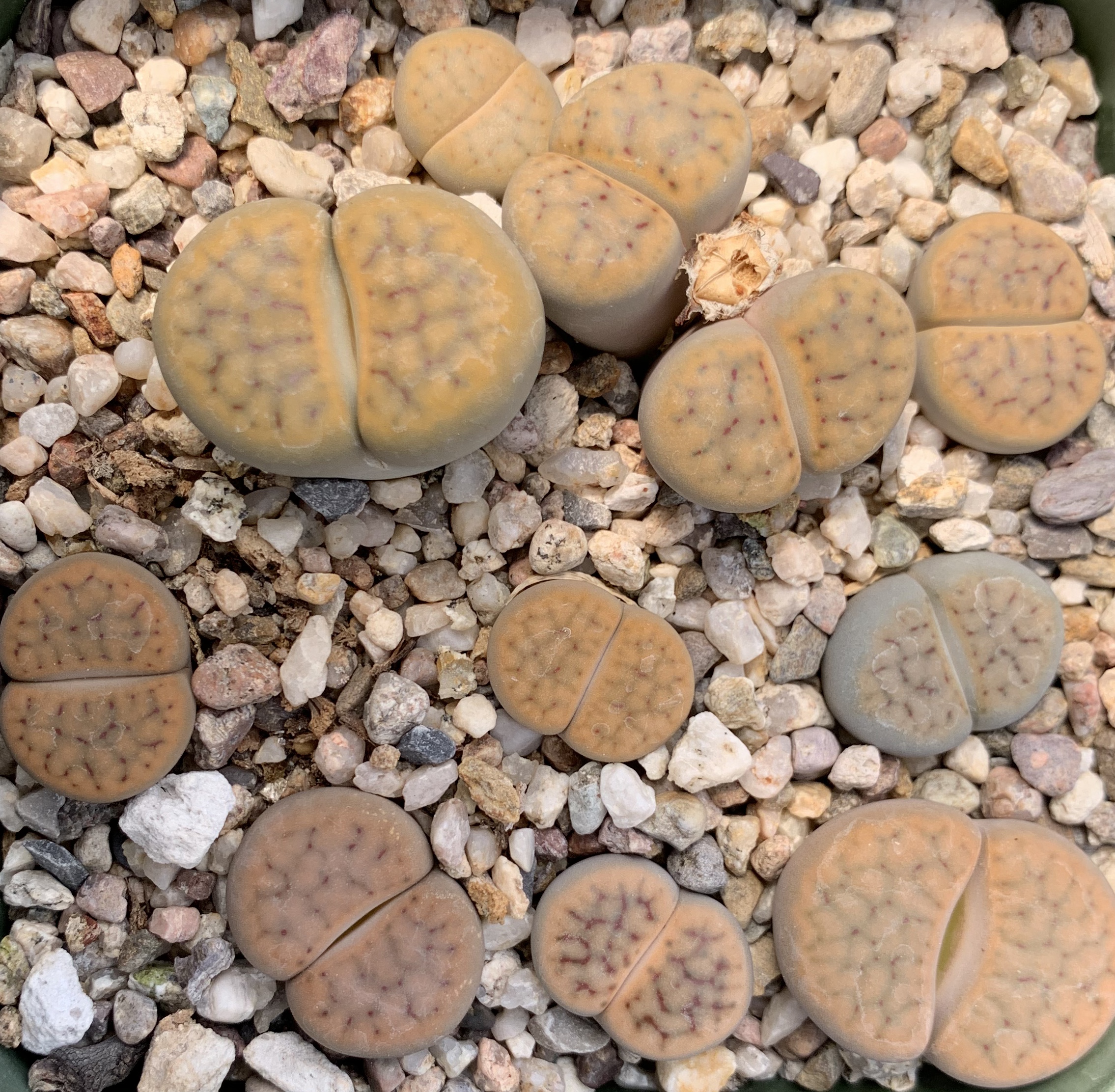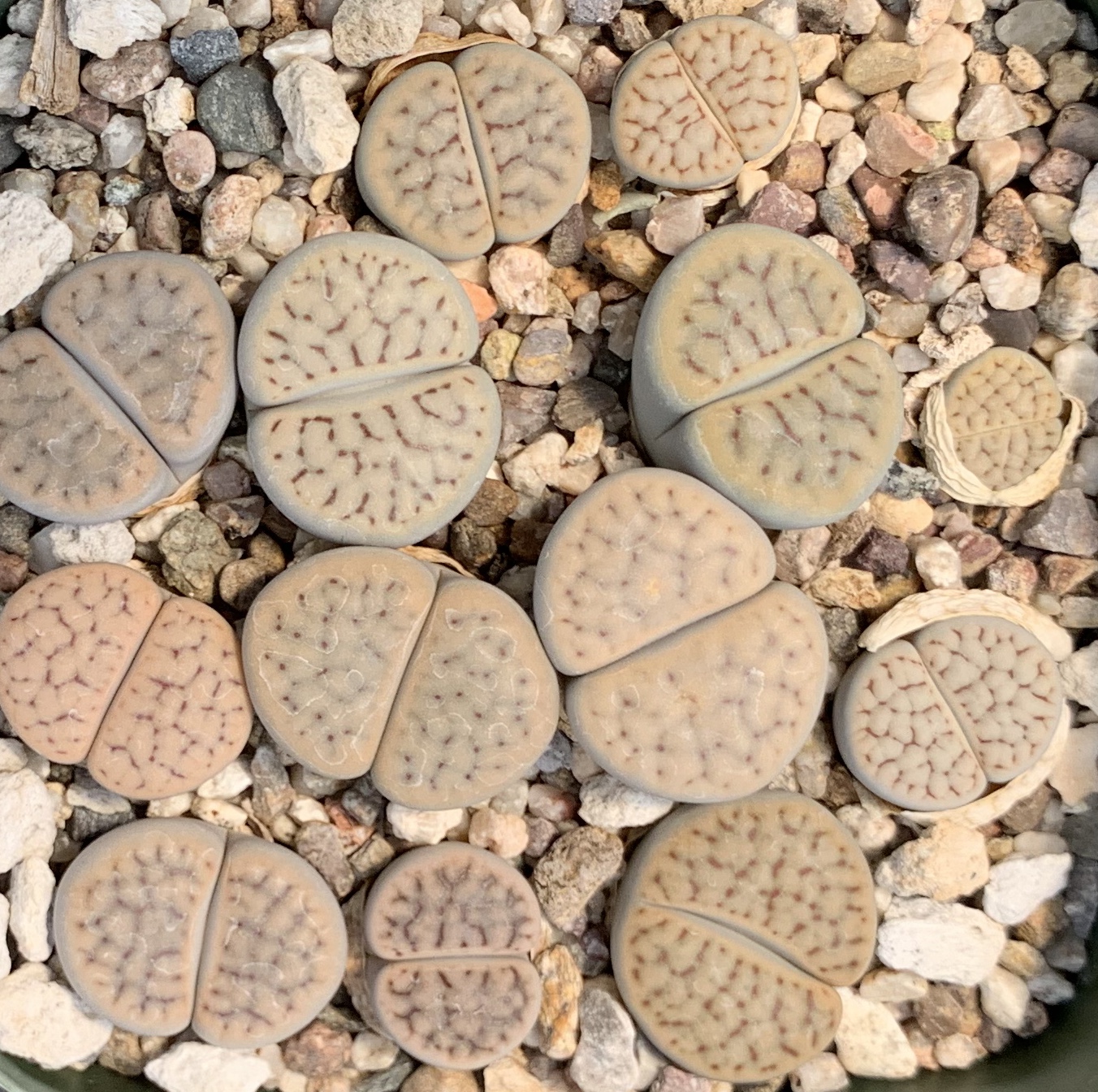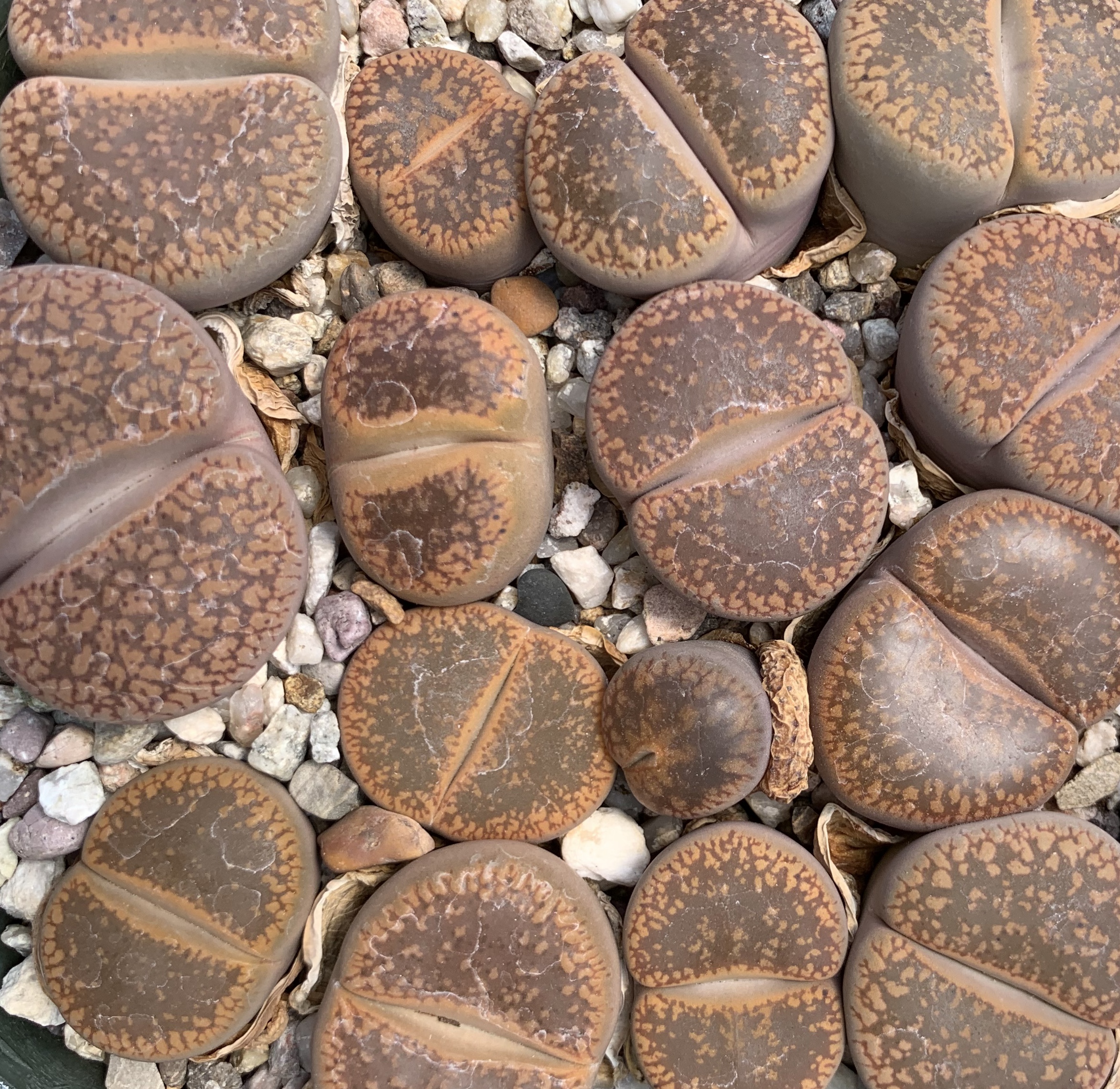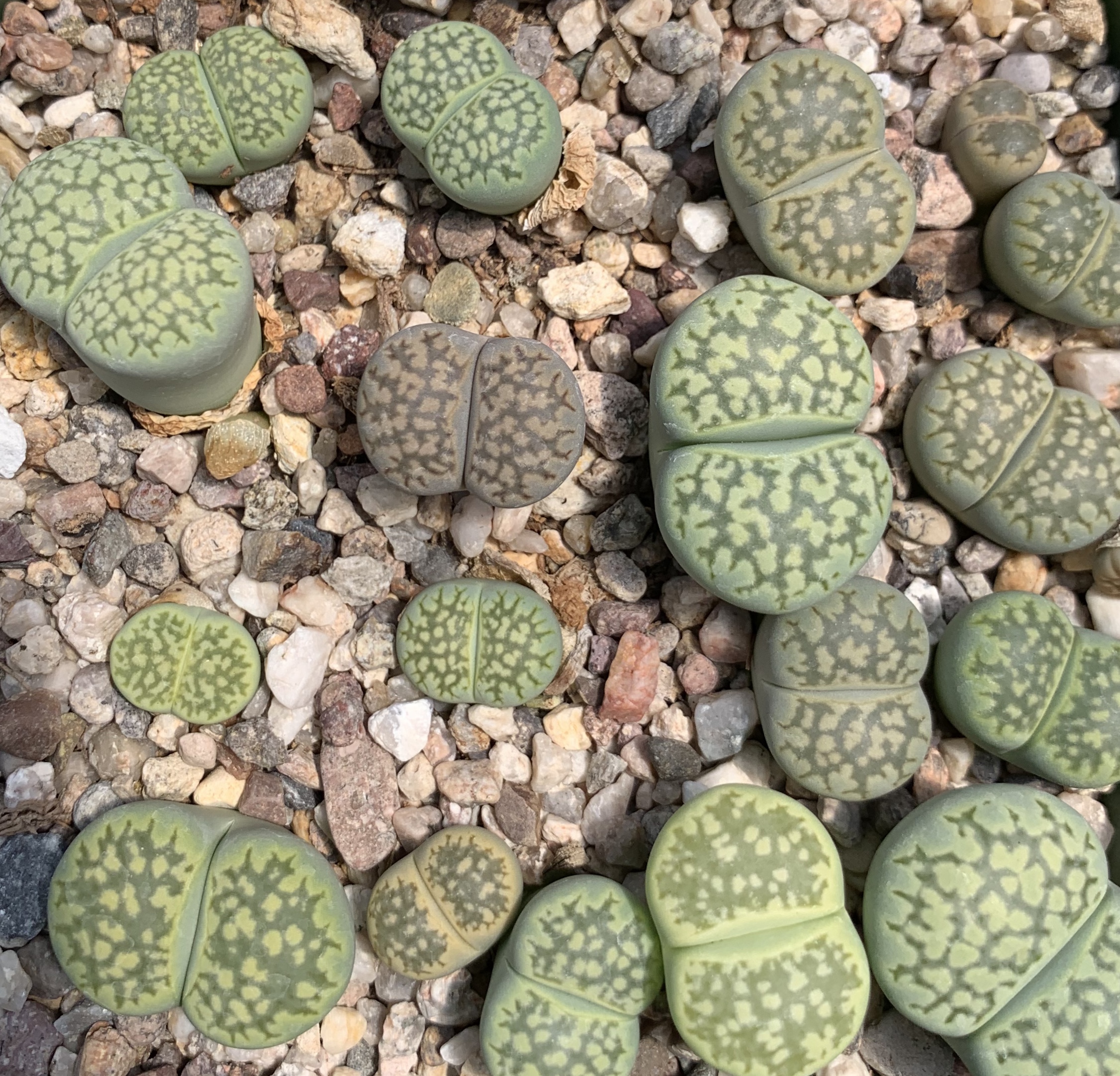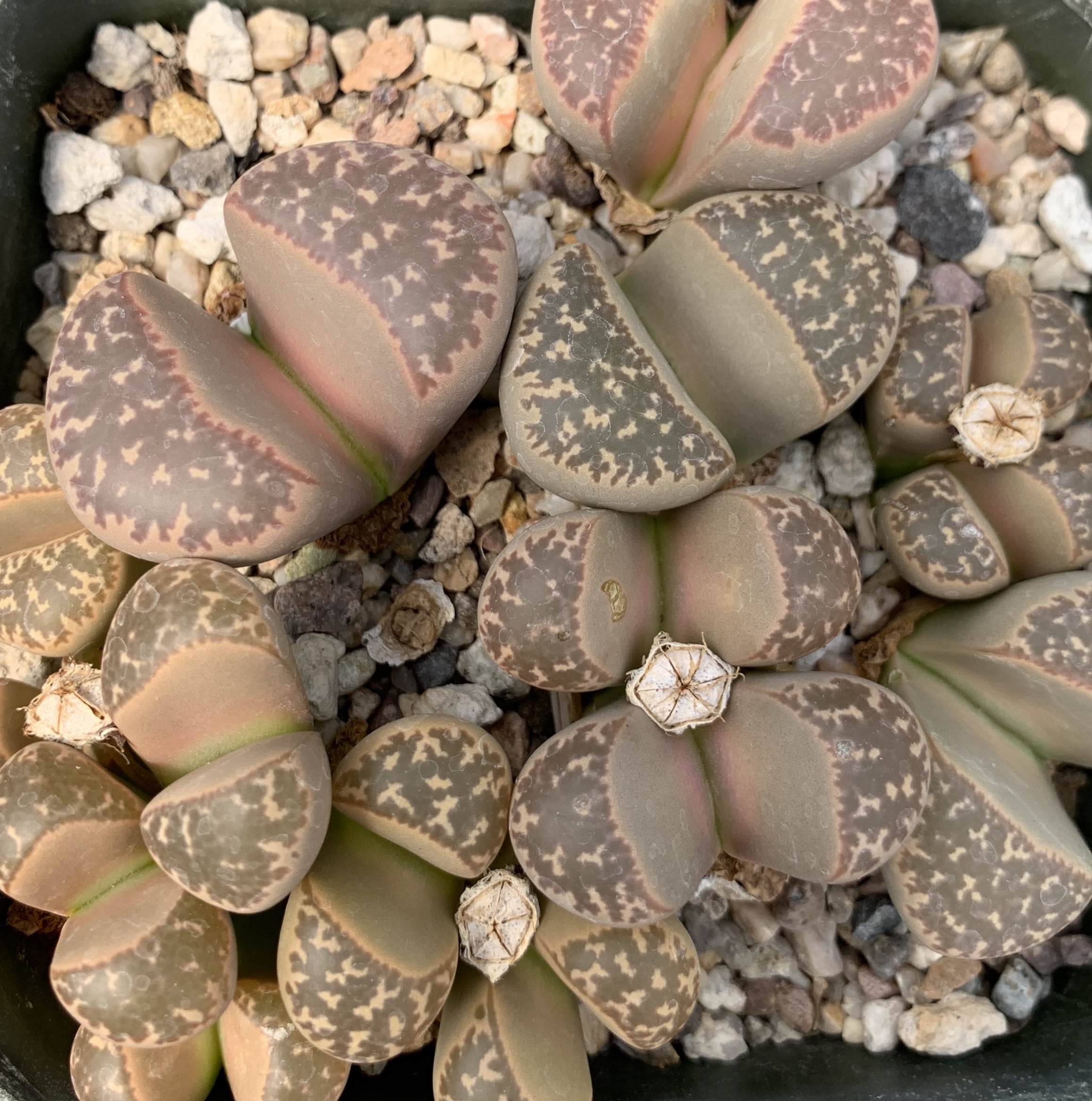 Raised from seeds, most of our Lithops are 3-4 years old and are flowering size. When you buy individual Lithops or a collection, you will receive one or two-headed plants. Larger clumps are available occasionally.